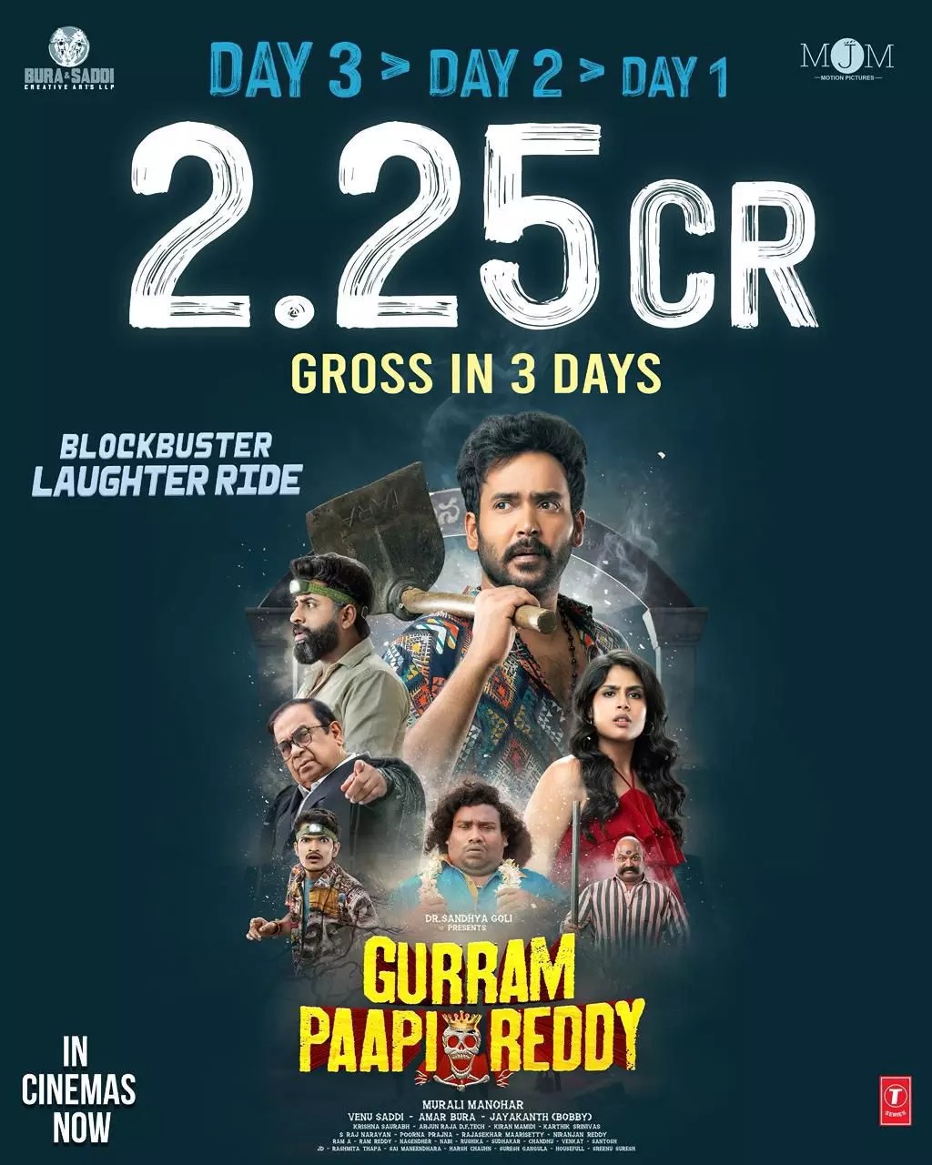తాజాగా మేకర్స్ వెల్లడించిన సమాచారం ప్రకారం, గుర్రం పాపిరెడ్డి సినిమా కేవలం మూడు రోజుల్లోనే రూ.2.25 కోట్లకు పైగా వసూళ్లు సాధించింది.