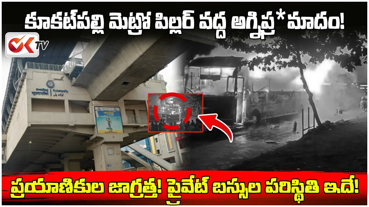 Kukatpally ప్రాంతంలో ప్రైవేట్ ట్రావెల్ బస్సుకు అగ్ని ప్రమాదం చోటుచేసుకోవడం ఆందోళన కలిగిస్తోంది. కేబిహెచ్పీ నుంచి ఎస్సార్ నగర్ వైపు వెళ్తున్న బస్సులో మెట్రో పిల్లర్ నంబర్ 734 వద్ద అకస్మాత్తుగా మంటలు చెలరేగాయి. ఈ ఘటనలో అదృష్టవశాత్తూ ఎవరూ గాయపడలేదు.