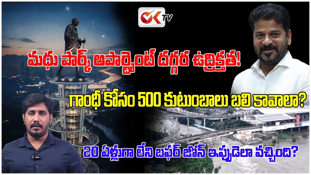 గత వారం రోజులుగా రాష్ట్ర రాజకీయాల్లో తీవ్ర చర్చకు దారి తీసిన అంశం — మూసీ నది సుందరీకరణ ప్రాజెక్ట్, గాంధీ విగ్రహం నిర్మాణం, అలాగే మధు పార్క్ అపార్ట్మెంట్స్ ఖాళీ చేయింపు వివాదం. అధికార పార్టీ 5 వేల కోట్ల రూపాయలతో గాంధీ విగ్రహం నిర్మాణం చేపడుతోందని ఒక వర్గం చెబుతుంటే… మరోవైపు అదే ప్రభుత్వ నాయకులు అలాంటి ప్రకటన ఎక్కడ చేశామని ప్రశ్నిస్తున్నారు.